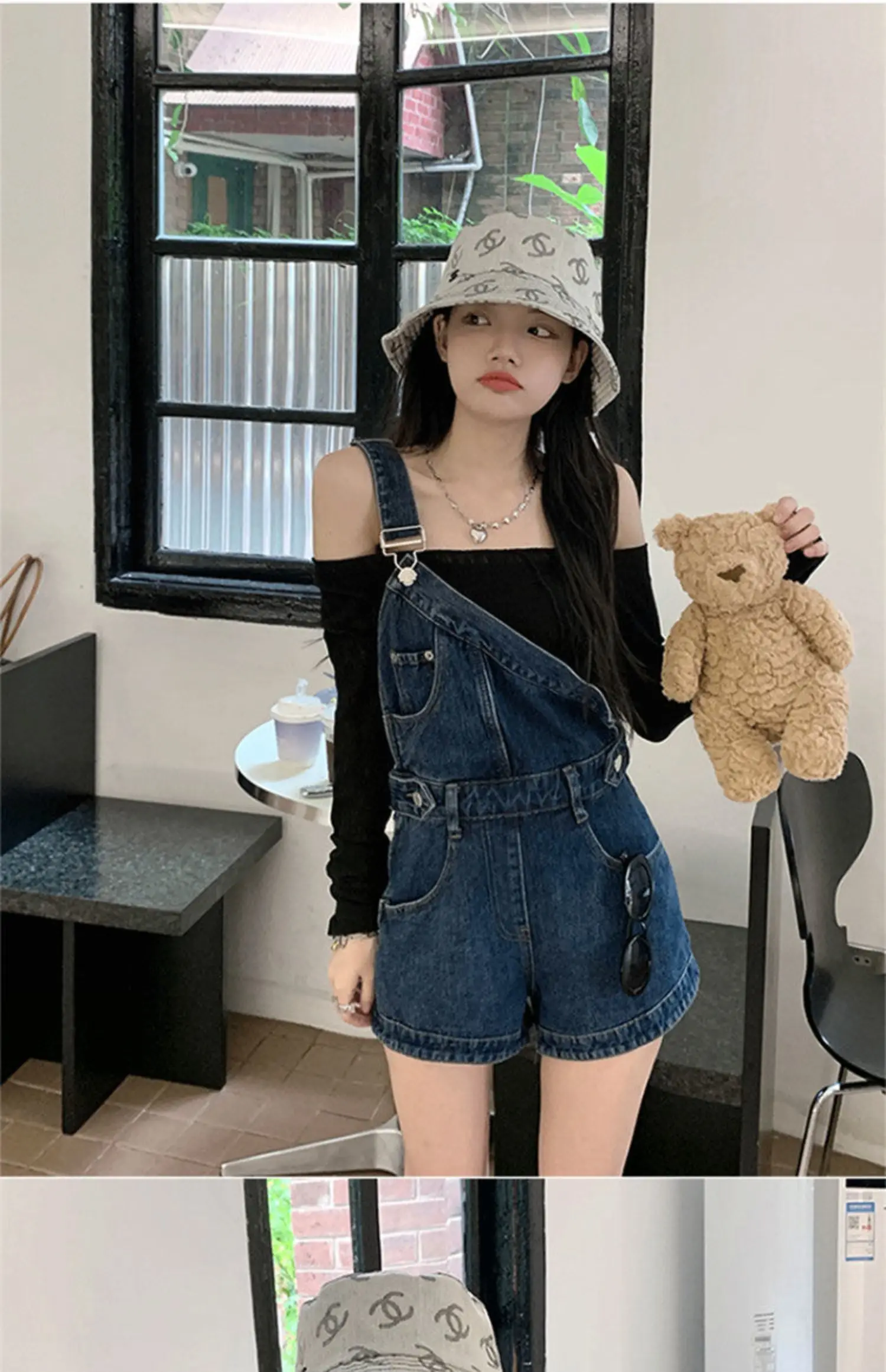 • blue-irregular-overalls-shorts-single-piece