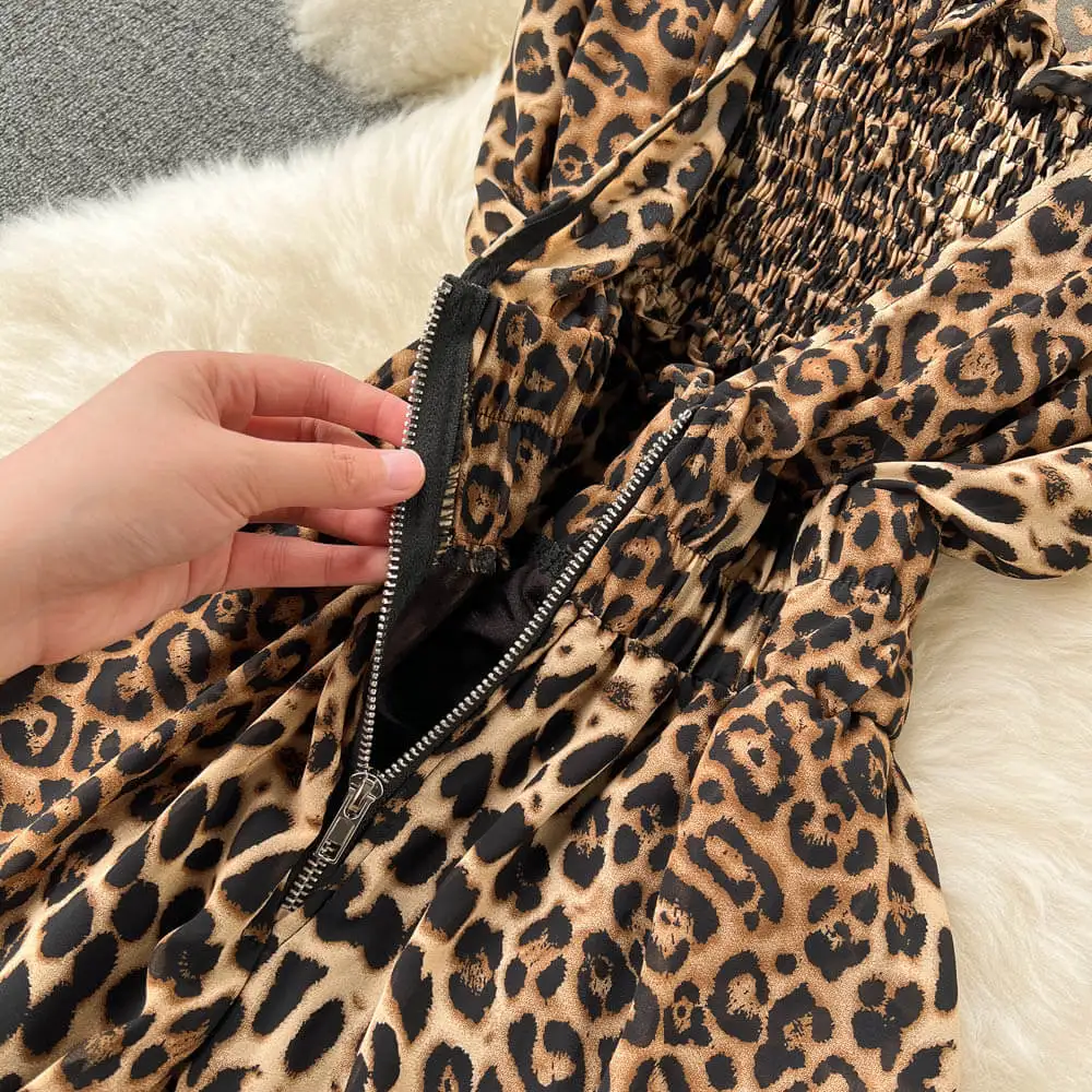 Women Square Neck Sleeveless Summer New Waisted Loose Wide Leg Pants Leopard Print Jumpsuit |